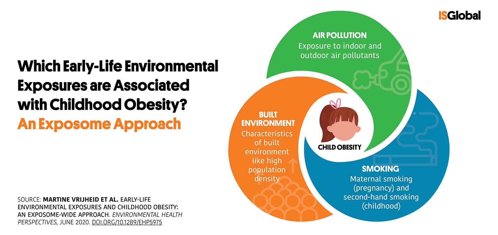 ¿De qué manera influyen las exposiciones ambientales durante el embarazo y la infancia en un mayor riesgo de obesidad infantil? El Instituto de Salud Global de Barcelona (ISGlobal), centro impulsado por la Fundación ”la Caixa”, y la Universidad del Sur de California han liderado el primer gran estudio que relaciona una multitud de contaminantes y factores ambientales –77 exposiciones prenatales y 96 postnatales- con el riesgo de obesidad infantil. Los resultados muestran el papel destacado que podrían jugar la contaminación atmosférica, el tabaco y las características del entorno construido , como vivir en áreas densamente pobladas, en el desarrollo de este problema de salud infantil.
