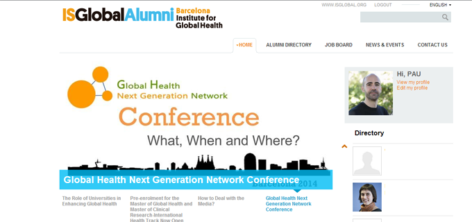 Desde esta semana, ISGlobal cuenta oficialmente con una red de Alumni. Se trata de una web que servirá de punto de encuentro y como herramienta de networking a todos los antiguos alumnos de los cursos organizados por nuestro departamento de Formación. Entre los servicios iniciales de la plataforma figuran un directorio de contactos y una bolsa de trabajo en la que se publican tanto las ofertas propias como otras relacionadas con el sector de la salud global.