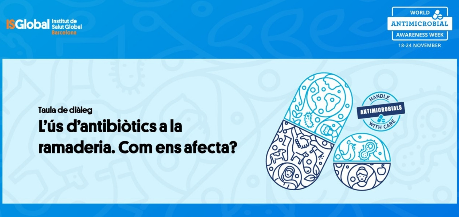 Arran de la Setmana Mundial per l'Ús Racional dels Antibiòtics (World Antimicrobial Awarenesss Week, promoguda per l'OMS), l'equip de cultura científica d'ISGlobal i la Iniciativa de Resistències Antimicrobianes d'ISGlobal hem organtizat una taula de diàleg on debatrem l'impacte de les Resistències Antimicrobianes en el sector de la ramaderia; així com les experiències de representants del sector i de l'equip d'investigació per nous tractaments antibiòtics, gràcies a representants de l'equip d'investigació en l'àmbit de nous antibiòtics, i representants del sector veterinari i ramader de Catalunya.