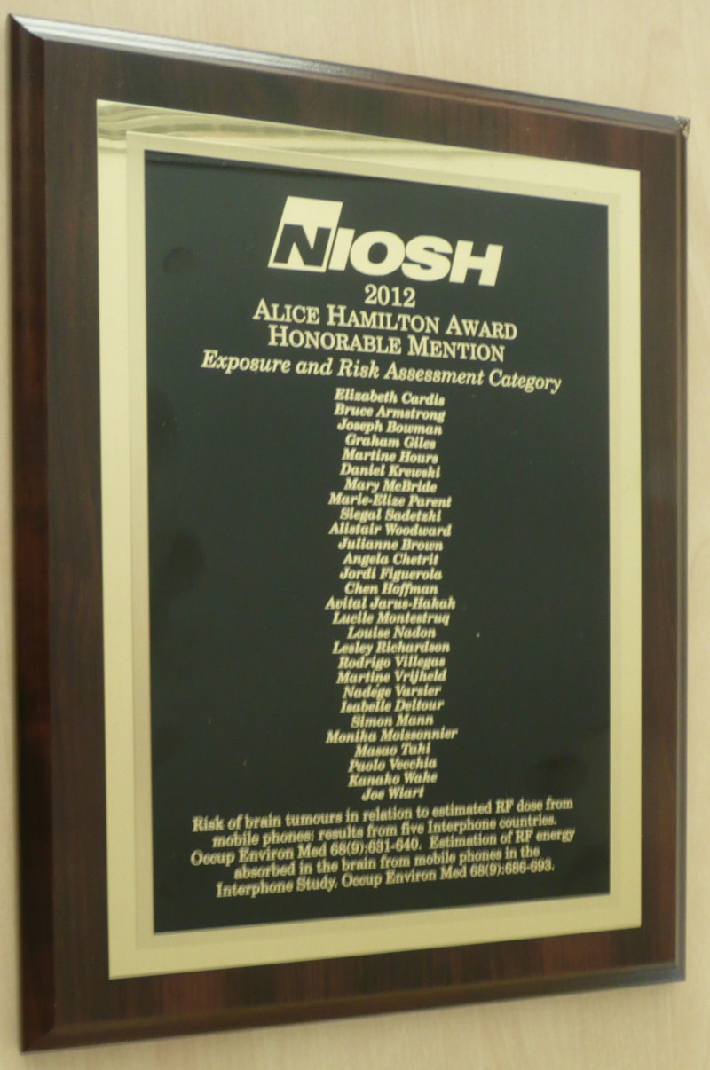 Els treballs premiats són fruit de col·laboracions multinacionals i multidisciplinàries a llarg termini en el camp dels riscos de tumors cerebrals i l'exposició a la radiació de radiofreqüència dels telèfons mòbils. Tots dos van ser publicats en la revista Occupational and Environmental Medicine (http://oem.bmj.com/) el setembre de 2011: