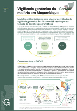 The overall aim of the GenMoz project is to build malaria genomic capacities in Mozambique in order to increase the actionable intelligence for making programmatic decisions on the optimal mix of control and elimination measures in Mozambique. The project proposes a participatory approach engaging all parts of the health system to promote a culture of genetic data use and increase the public health impact, while leveraging ongoing activities and existing capacity in Mozambique.