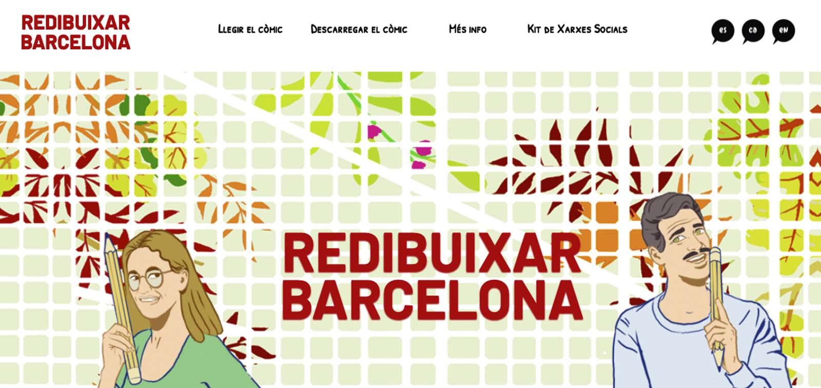 Redibuixar Barcelona es publica inicialment com webcòmic gratuït en tres idiomes: castellà, català i anglès. Està disponible per a la seva lectura i descàrrega gratuïtes a redibuixarbarcelona.isglobal.org.