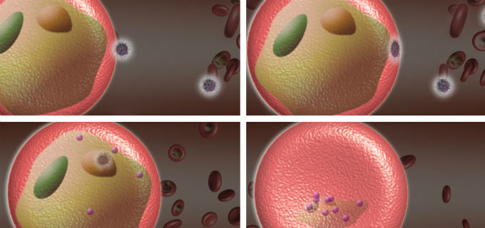 El tractament terapèutic actual contra la malària necessita estratègies capaces d'introduir selectivament fàrmacs a les cèl·lules parasitades per Plasmodium. En aquest estudi els investigadors han explorat els nanosistemes polimèrics AGMA1 i ISA23 com adjuvants de fàrmacs antimalàrics contra el patogen. La sal polimèrica AGMA1 té activitat antimalàrica per si mateixa, demostrada per la seva inhibició del creixement in vitro de Plasmodium falciparum. L'estudi mostra que els dos polímers s'uneixen preferentment a glòbuls vermells infectats per Plasmodium respecte als no infectats. A més, es mostren com a diana contra el propi paràsit en espècies com Plasmodium falciparum i Plasmodium yoelii, àmpliament divergents, que infecten éssers humans i ratolins respectivament. L'administració intraperitoneal de 0,8 mg/kg de cloroquina conjugada en forma de sals amb AGMA1 o ISA23 va curar ratolins infectats per P. yoelii, mentre que els animals control, tractats fins i tot amb dosis dues vegades més altes del medicament, no van sobreviure.