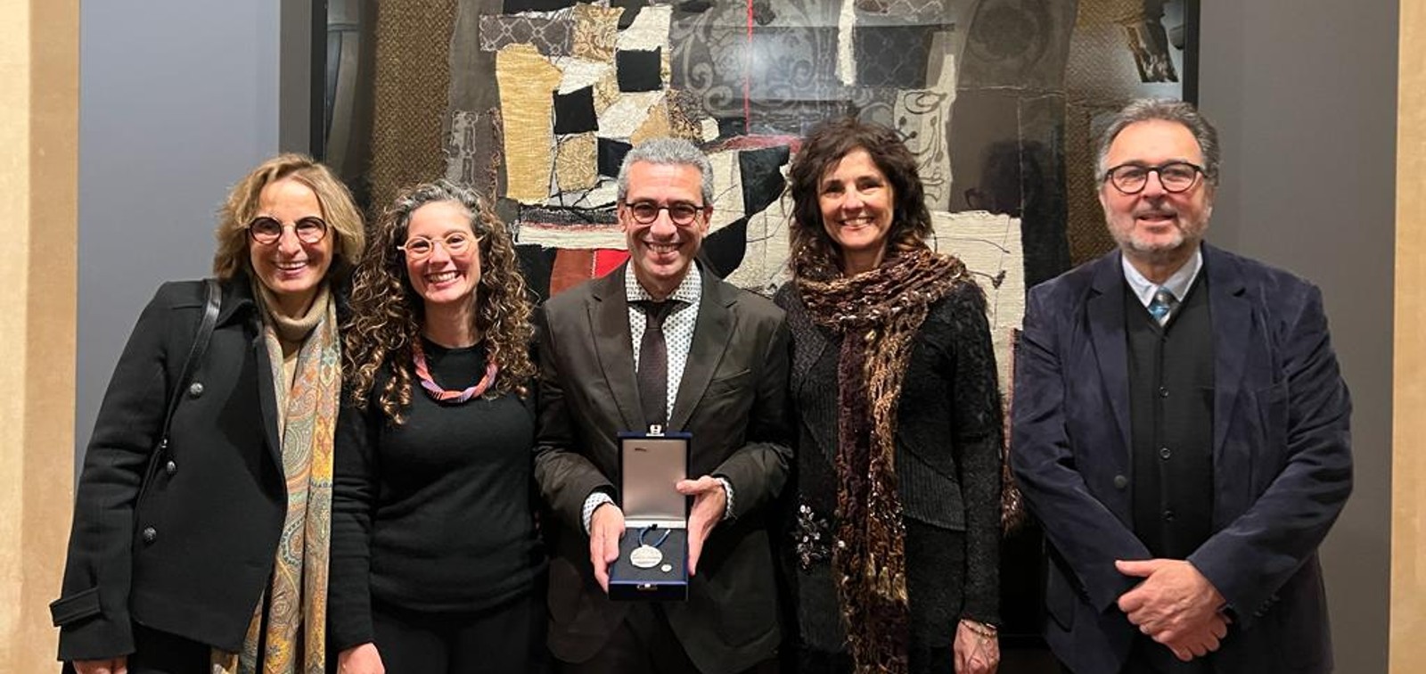 Foto: Quique Bassat, juntament amb Núria Casamitjana, Maria Maixenchs, Denise Naniche i Antoni Plasència, durant l'acte d'entrega dels premis.