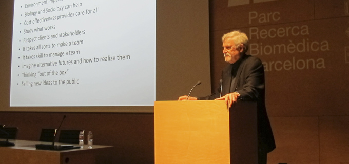 Raymond Neutra va centrar la seva presentació en el "Design Thinking", una metodologia inspirada en la resolució pràctica i innovadora dels problemes per aconseguir un millor resultat futur, combinant l'empatia, la creativitat i la racionalitat. La innovació, va explicar, depèn de noves formes de percebre i interpretar el món que ens envolta. Per tant, es basa en un conjunt d'experts de diferents disciplines que col·laboren amb una mateixa finalitat. Aquest fet, va argumentar, pot contribuir al desenvolupament del sector de la salut, ja que no només desenvolupa productes tangibles com els medicaments sinó que en ell també són fonamentals intangibles com la pràctica clínica, les estratègies de tractament i els protocols.