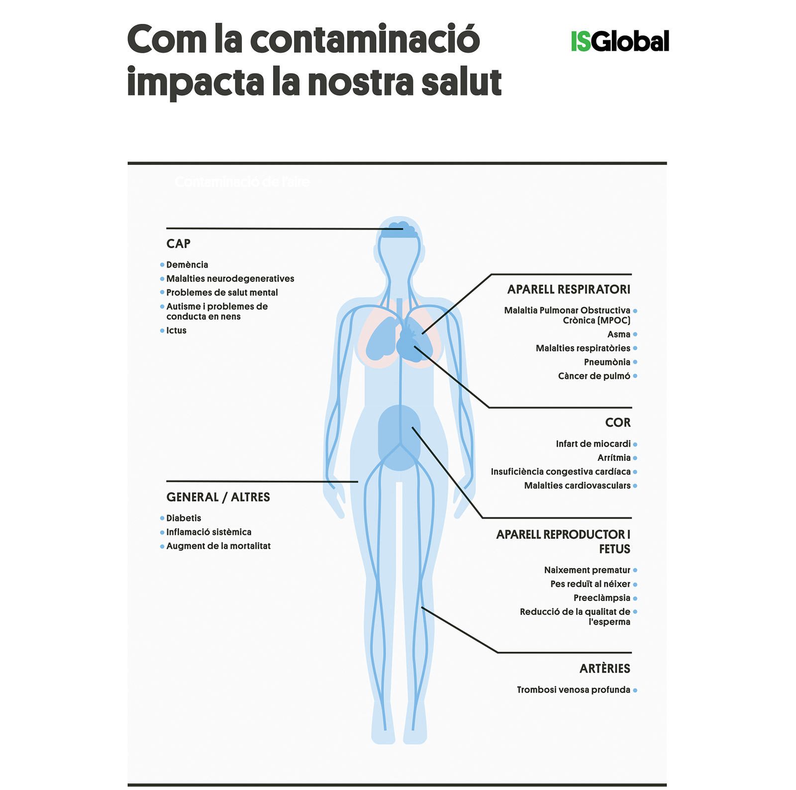 Imatge: Efectes de la contaminació atmosfèrica sobre la salut. ciutatsquevolem.isglobal.org.