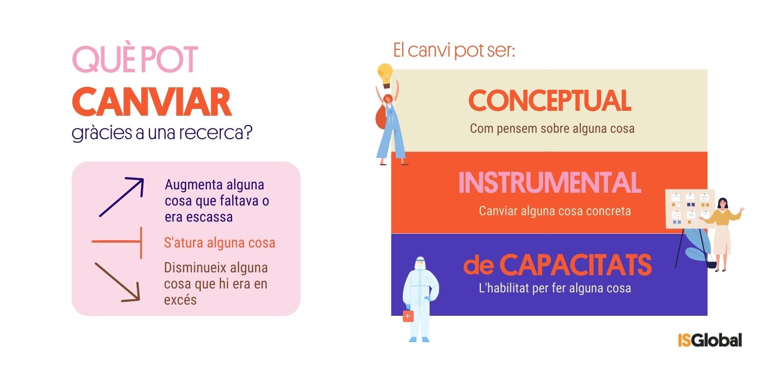 Idealment, el canvi impulsat per la recerca implica identificar un problema o una necessitat, definir el que hauria de canviar (objectius d'impacte) i, una vegada sabent on es vol arribar, establir com arribar-hi: quina recerca caldrà fer, a qui involucrarem en el procés (socis, parts interessades), com mobilitzarem el coneixement i quins indicadors d'èxit utilitzarem.