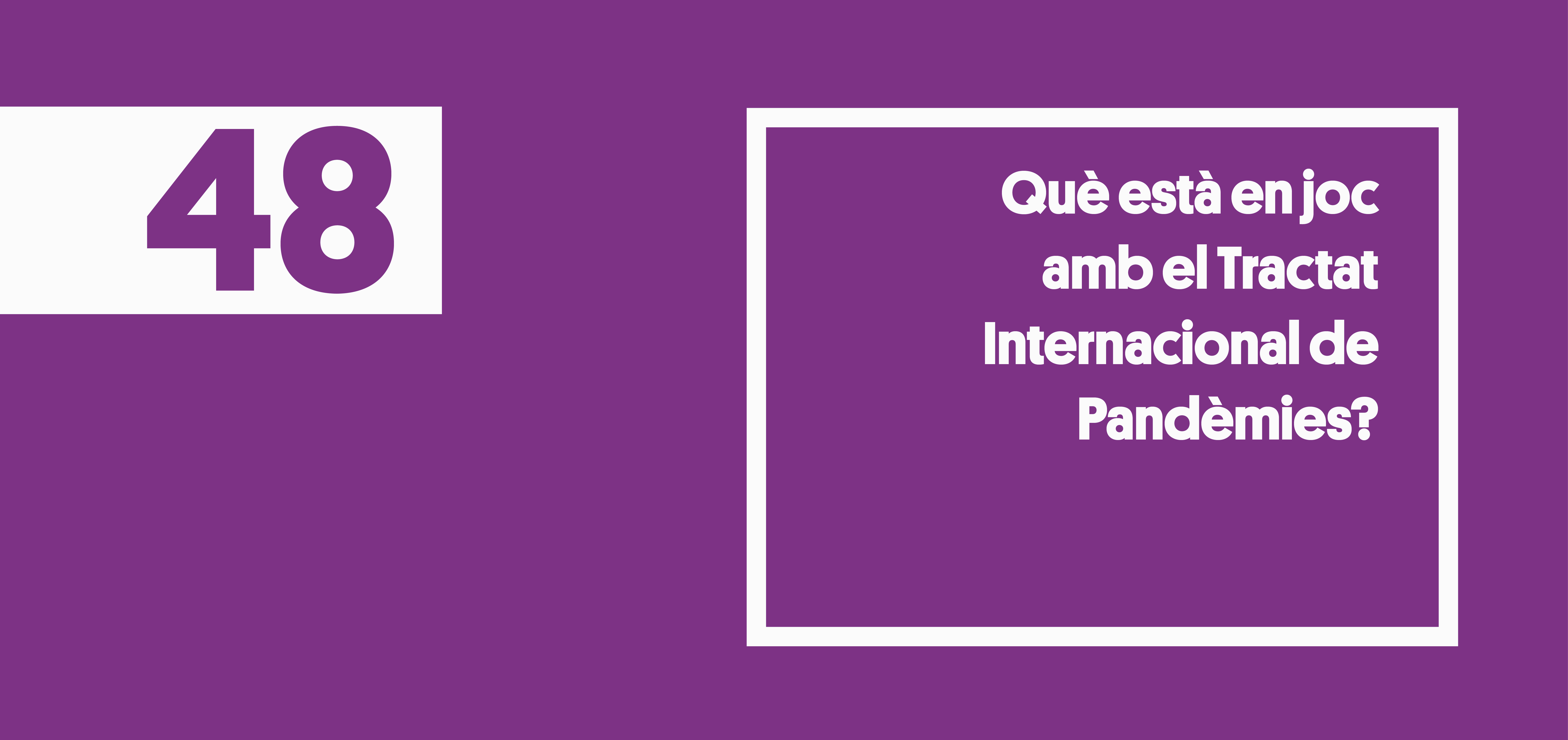 La comunitat internacional és conscient que hi haurà noves pandèmies i noves grans emergències sanitàries en algun moment o un altre. D'aquí que es plantegi un tractat internacional que estableixi les bases per reaccionar de manera conjunta i organitzada davant una crisi com la viscuda amb la COVID-19. Aquest tractat, que ja es comença a negociar, hauria de donar prioritat a l'interès públic i a l'equilibri entre les diferents nacions, i garantir l'accés universal i equitatiu a diagnòstics, vacunes i medicaments.