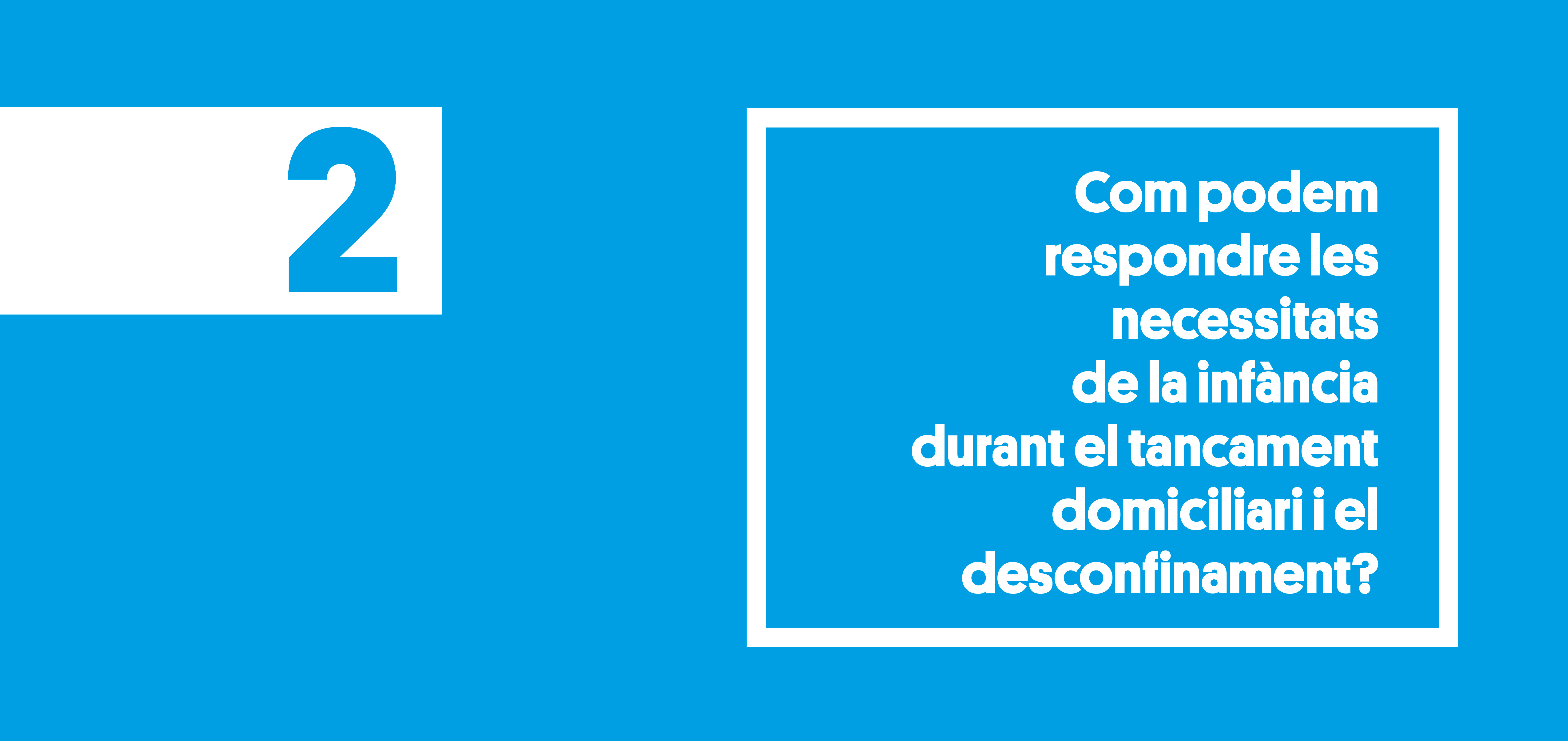 17.04.2020Aquest és el segon document de la sèrie COVID-19 i estratègia de resposta, aquest cop dedicat als nens i nenes: com es pot respondre a les necessitats de la infància durant el tancament domiciliari i el desconfinament?
