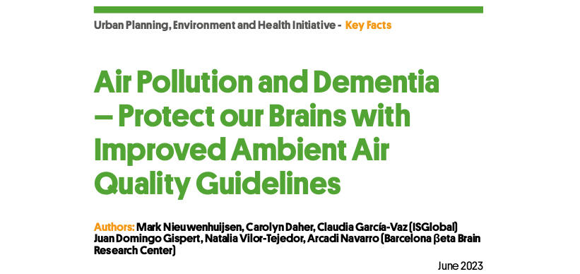 This fact sheet sumarizes the main evidences that link air pollution with Alzheimer's disease and other types of dementia. Dementia imposes a large burden on health and social care systems, and this burden will rise over the next decades. In Europe, a recent report by the WHO estimates the costs of caring for the 14.1 million people living with dementia in the European Region at EUR 392 billion or almost EUR 28,000 per person with dementia in 2019 (WHO 2019). A growing body of evidence supports that modifiable risk factors for dementia account for around 40% of the cases (Livington et al 2020), which could be prevented or delayed. In particular, air pollution is one of the well-established risk factors for dementia, at present accounting for more than 500,000 in the EU.