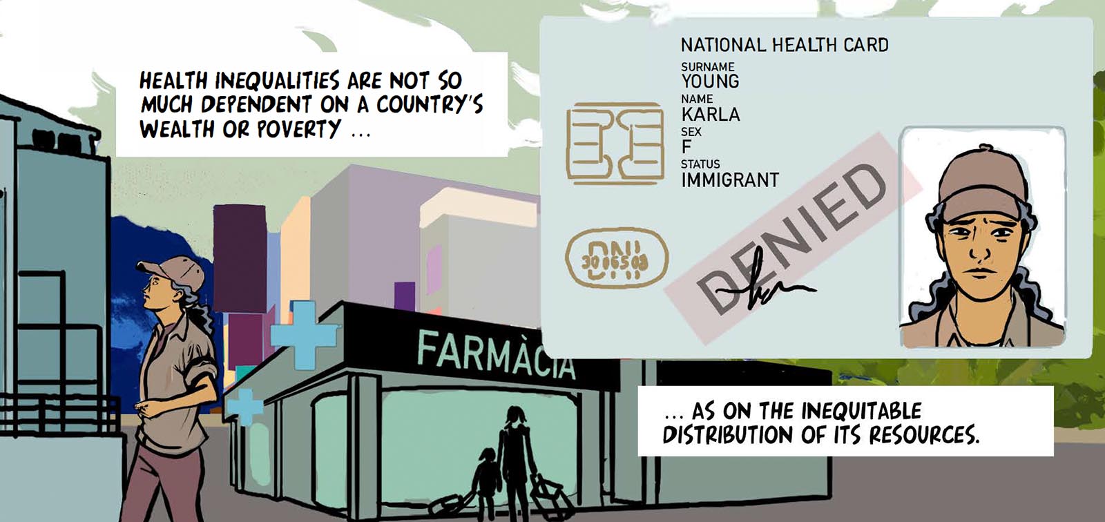 This comic is about health inequalities in populations around the world, that is, differences in access to health, disease distribution, causes of death, risk factors, among others.