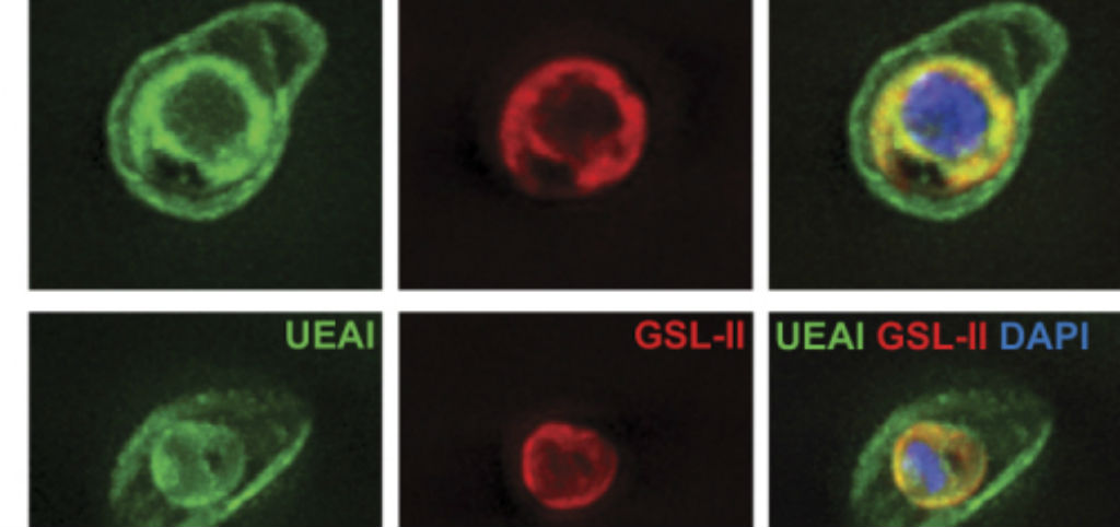 We aim to probe essential and/or unanticipated enzymatic steps in these metabolic routes that are unidentified in the P. falciparum genome. Among these unresolved issues are: i) the identity of the P. falciparum putative glucosaminephosphate N-acetyltransferase (GNA) that converts glucosamine-6-P (GlcN6P) to GlcNAc6P; ii) the source (and biological significance) of the UDP-galactose (UDP-Gal) pool detected in the blood-stages of the parasite. Furthermore, our previous studies have shown the presence of GDP-fucose (GDP-Fuc) pools through the asexual stages of P. falciparum life-cycle at levels comparable to other protozoan parasites. This, together with the incorporation of tritium labelled GDP-Fuc by cell extracts of the parasite, strongly suggests the presence of active fucosylation mechanisms in P. falciparum. Our works show that P. falciparum blood-stage cell lines with engineered alterations in the GDP-Fuc biosynthetic pathway are not labelled by the fucose-binding Ulex europaeus agglutinin I (UEA-I). Therefore, a fucosyl transferase could be involved in the synthesis of an uncharacterized UEA-I-glycotope on the surface of the parasite.