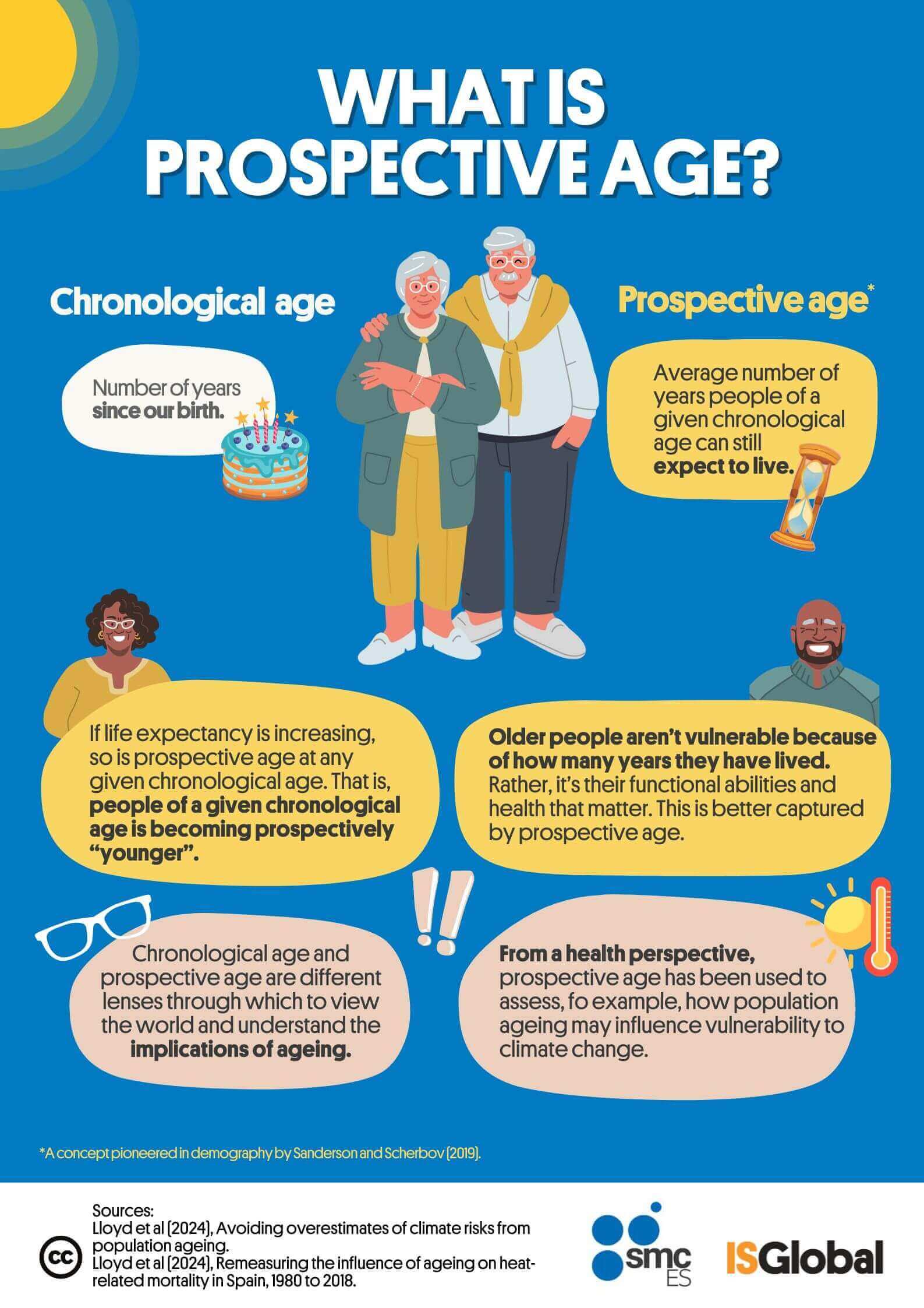 As people age, their health, disabilities and cognition tend to be more correlated with their prospective than chronological age. These same factors tend to be associated with the risks posed by climate change, including forheat-related mortality.