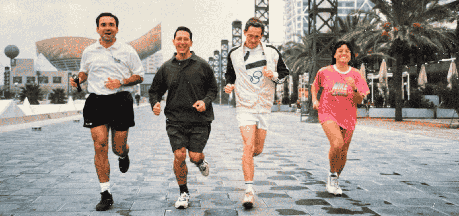 IMIM running group in the mid-1990s: Joan Soriano, Manolis Kogevinas, Jordi Sunyer and Rosa Lamarca.