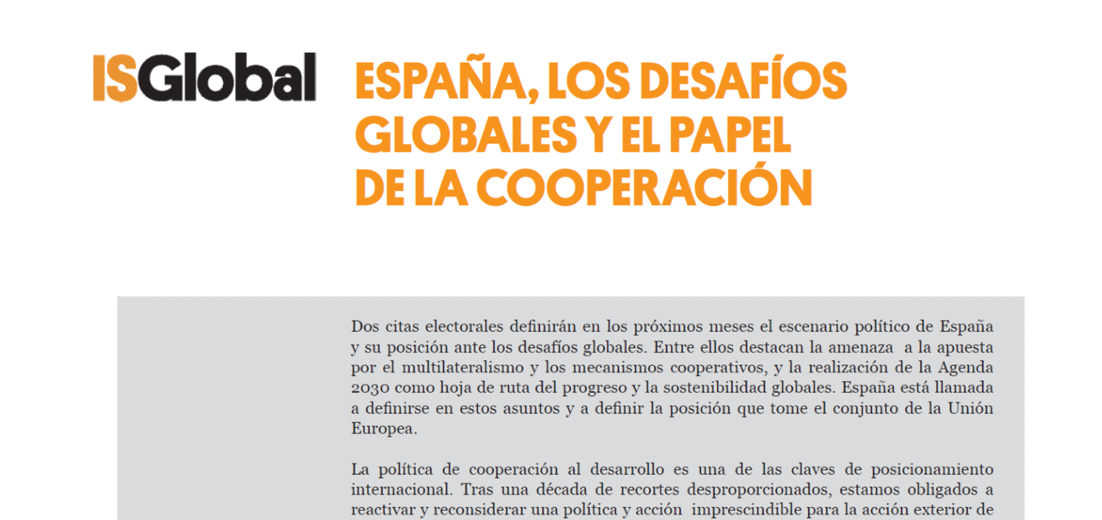 España, los desafíos globales y el papel de la cooperación