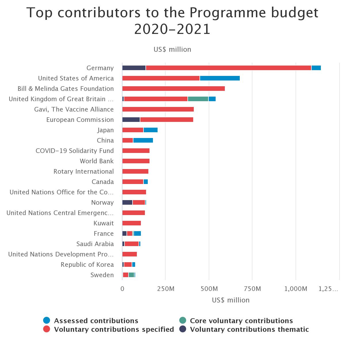 Figura 1: Principales financiadores de la OMS en el periodo 2020-21. Fuente: WHO