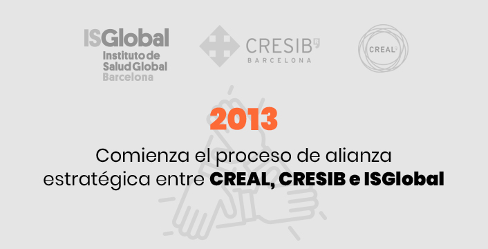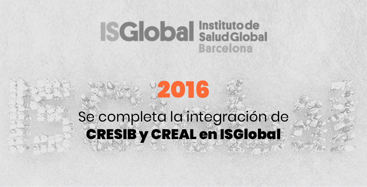 En 2013, y con el apoyo de la Generalitat de Catalunya a través del Programa SUMA de Integración de Centros CERCA, se inicia un proceso de alianza estratégica entre CRESIB, CREAL e ISGlobal con el objetivo de consolidar un centro de investigación y traslación en salud global más fuerte y competitivo a nivel internacional. En mayo de 2015 se formaliza la integración en ISGlobal de su hasta entonces centro de investigación, CRESIB. Un año más tarde, en junio de 2016, la integración entre ISGlobal y CREAL culmina un proceso de más de tres años de trabajo conjunto, contando en su Patronato con la Fundación Bancaria “la Caixa”, el Hospital Clínic, el Parc de Salut Mar, la Universitat de Barcelona, la Universitat Pompeu Fabra, la Generalitat de Catalunya, el Gobierno de España, l’Ajuntament de Barcelona y la Fundación Ramón Areces.